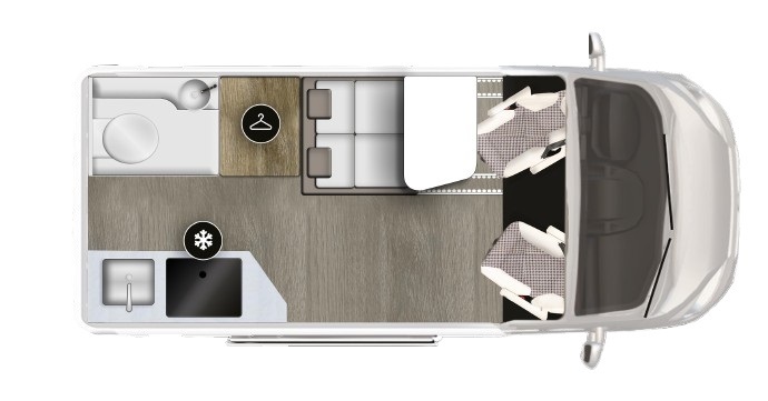 Noch komfortabler im Urlaub geht es mit dem neuen Duncan 550 zu. Der 5,44m kurze Van hat dabei selbst das an Bord, was ausgewachsene Kastenwagen auszeichnet: Platz für 4 Personen, Küche, Bad mit WC, Aufbau-Heizung und Kleiderschrank. Zudem ist er durch die freie Durchlademöglichkeit im Heck auch im Alltag sehr flexibel für Einkäufe und Transportaufgaben aller Art gerüstet.